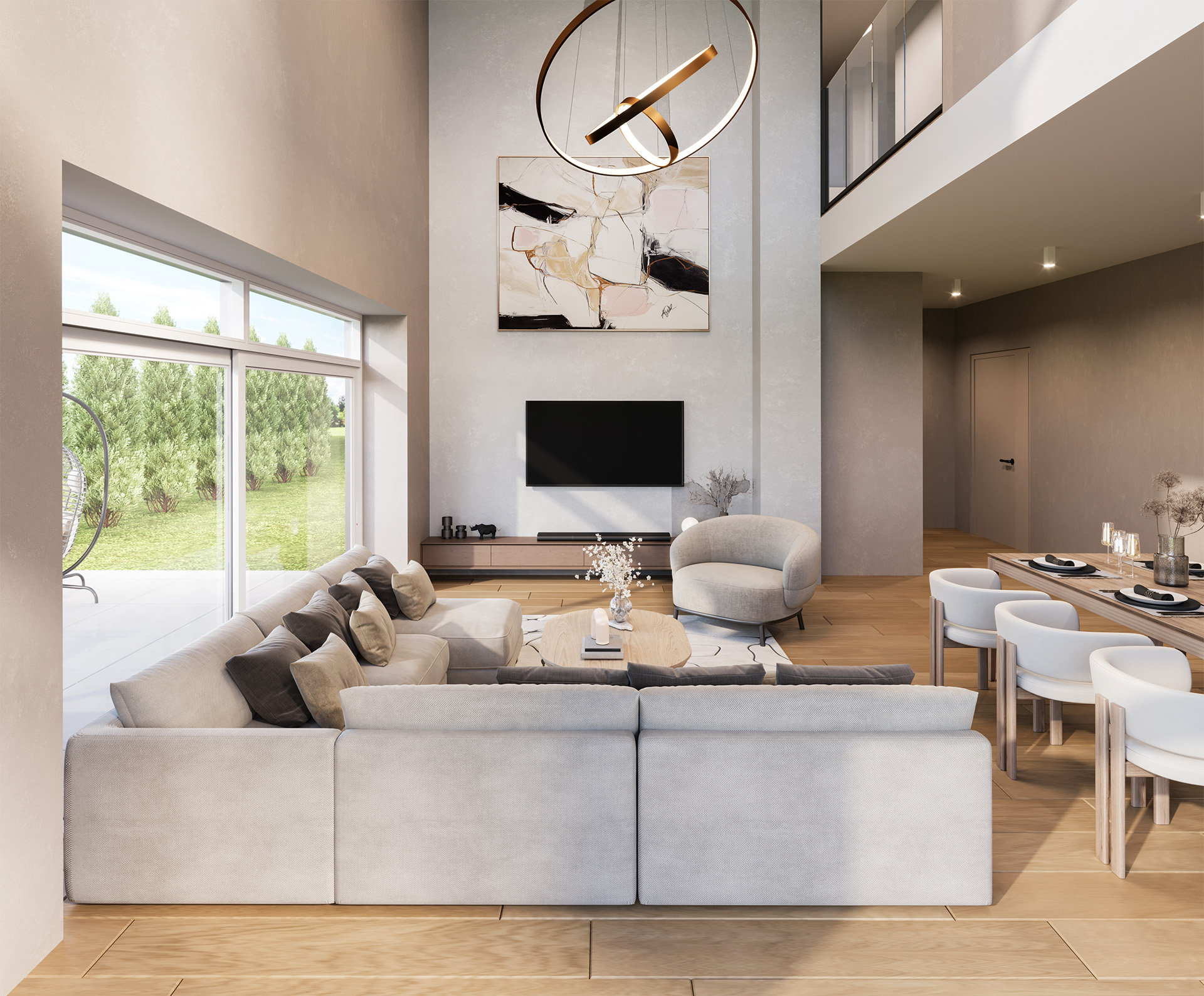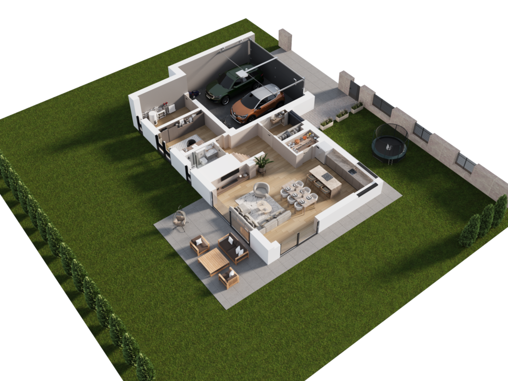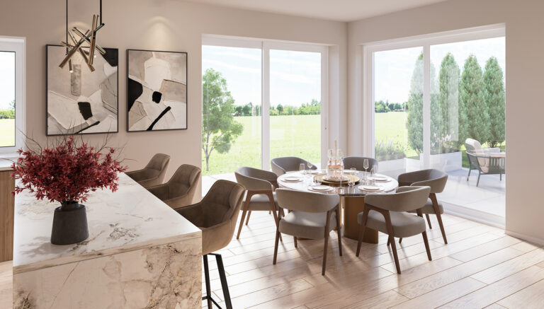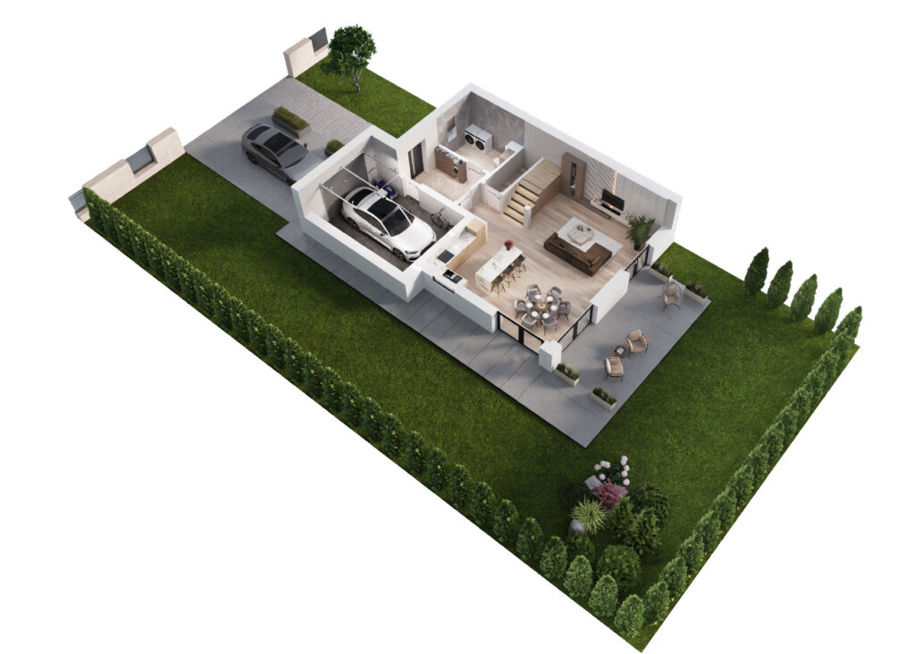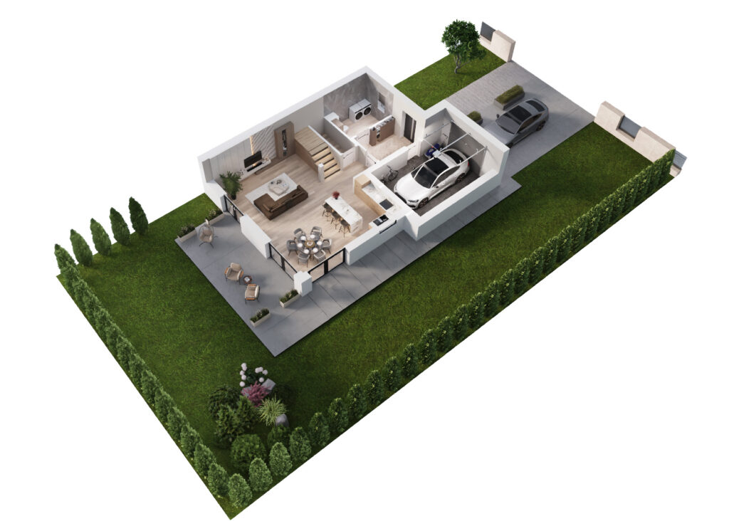 Domy w Maurycówce to przemyślana przestrzeń, która zachwyca funkcjonalnością i komfortem. Powierzchnie domów zaczynają się od 150 m², a ich sercem jest słoneczny salon z aneksem kuchennym – idealne miejsce do celebrowania chwil z bliskimi.